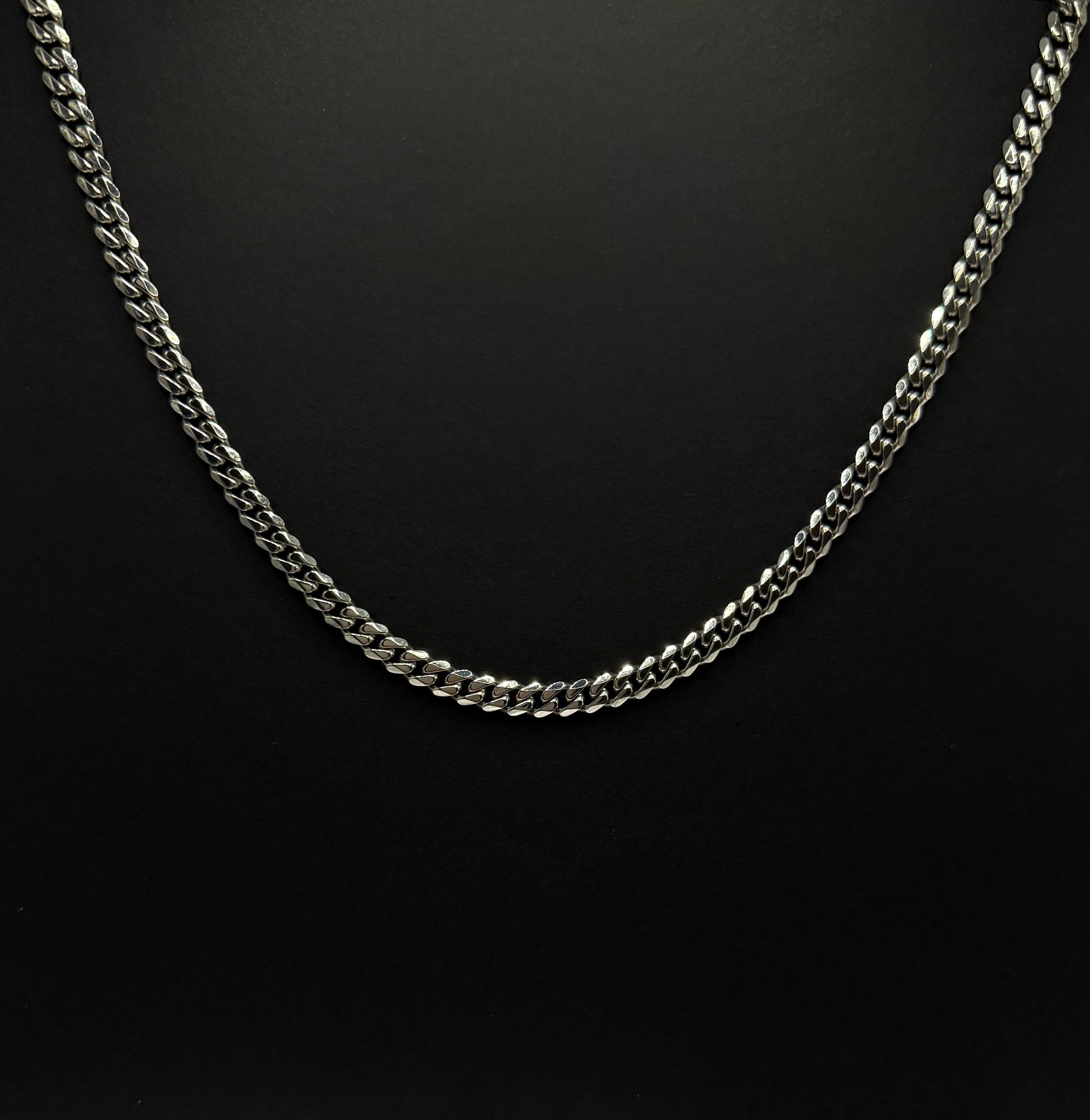 14K White Gold Plated Stainless Steel Cuban Link Chain 6mm